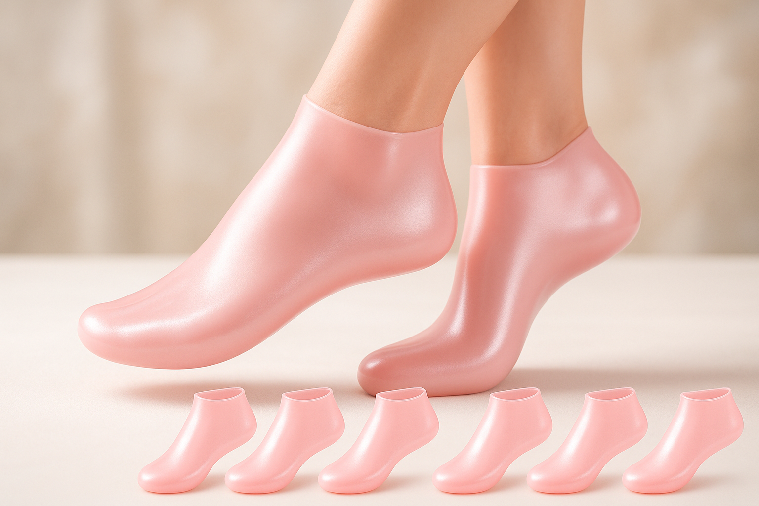 Our Silicone Moisturizing Socks deeply hydrate, repair, and soften skin with a nourishing gel lining infused with Aloe Vera & Vitamin E. Just slip them on after applying foot cream for enhanced hydration and a spa-like experience at home. Reusable, washable, and suitable for both men & women, these socks keep your feet smooth, soft, and healthy all year round.